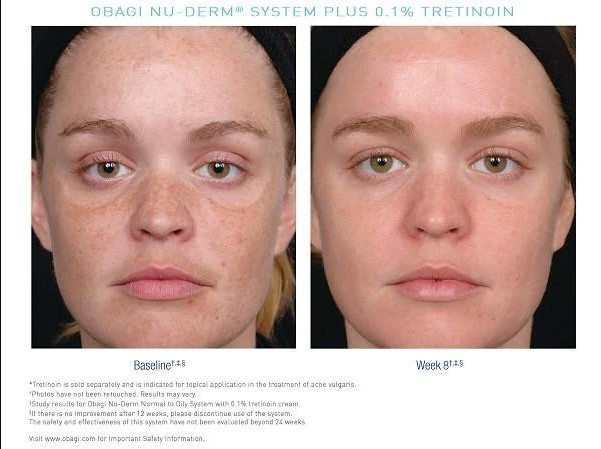Nu-Derm helps to transform your skin from the inside out with prescription 4% hydroquinone specially formulated for normal to dry skin. Skin aging is a natural process, but daily sun exposure can contribute to premature aging. Sun-damaged skin appears dull, with older, damaged cells accumulating due to slower skin cell turnover. The Nu-Derm System helps transform the skin’s appearance by reducing darks spots, revealing younger, healthier-looking skin.