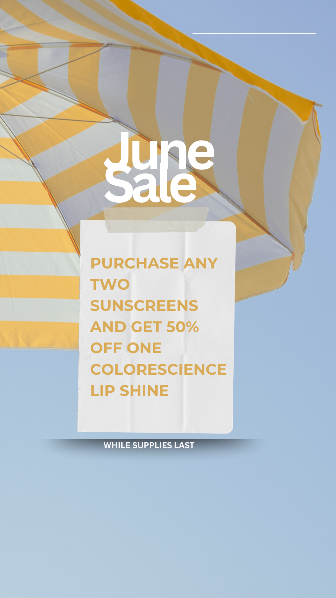 Purchase any TWO sunscreens and get 50% off ONE ColoreScience Lip Shine- See us in office to take advantage of this special!